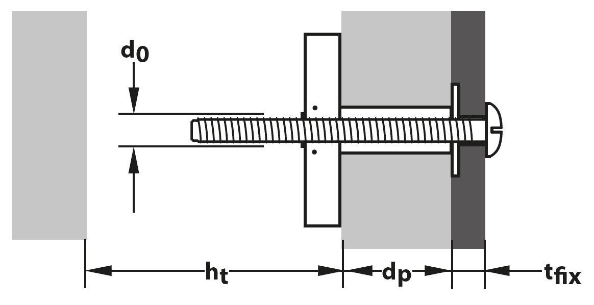 Beschrijving - Plug voor holle ruimten met variabele lengte, kunststof met metalen kantelvleugels
