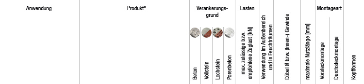 * Die genannte Produktempfehlung kann nur unverbindlich sein. Die Befestigungselemente müssen jeweils den örtlichen Verhältnissen und den verwendeten Materialien im Einzelfall angepasst werde.
