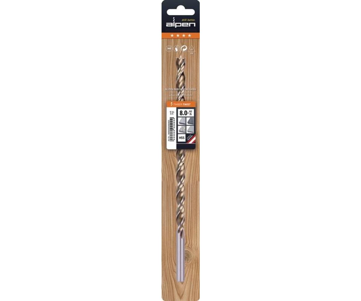 Spiralbohrer TIMBER TWIST · D.8mm Gesamt-L.250mm · ALPEN ·