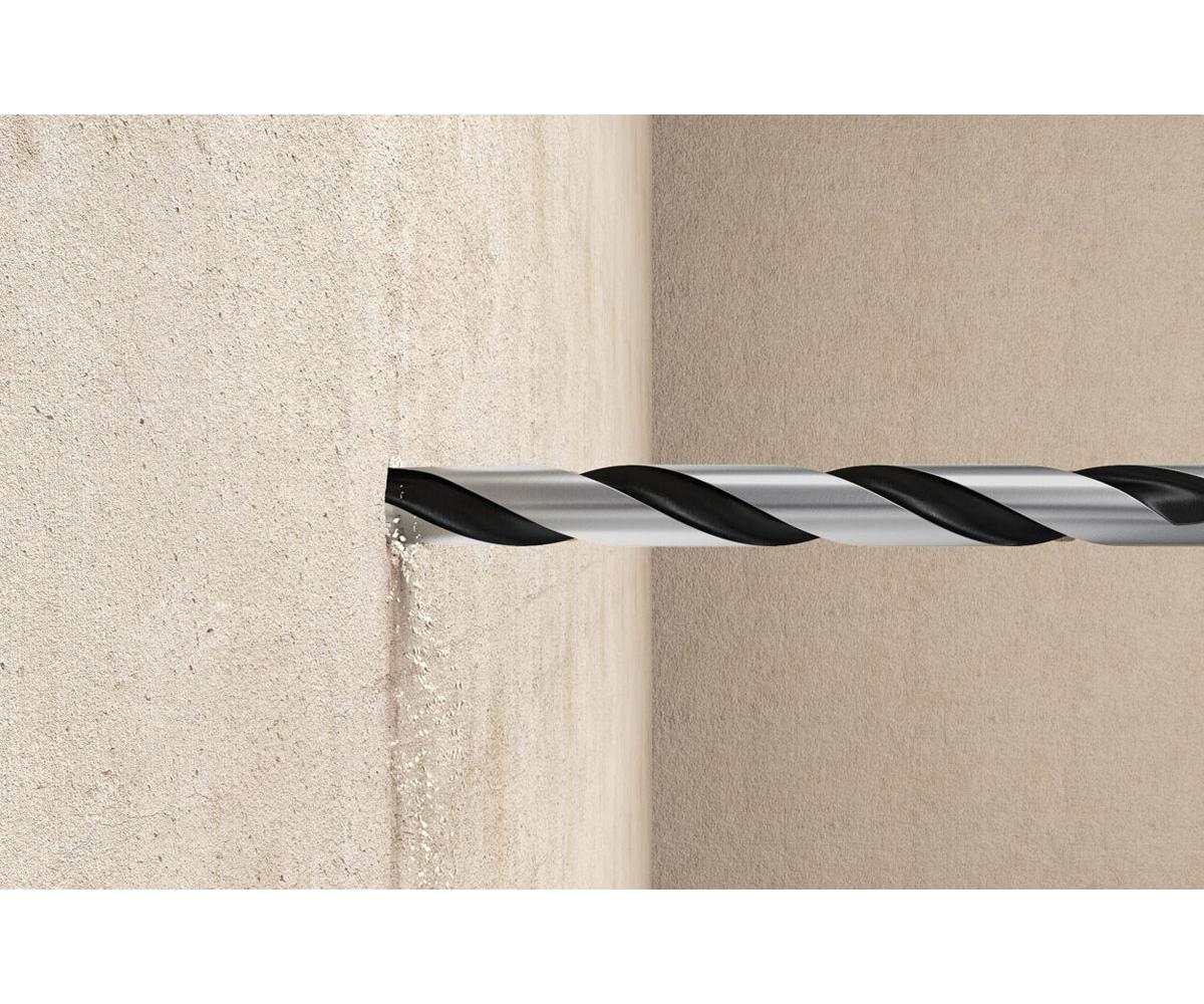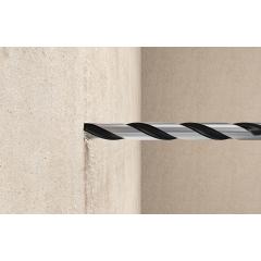 Betonbohrer mit brünierter Oberfläche und Hartmetallplatte nach DIN 8039, gefräst. Die 130° Hartmetallschneide sorgt für eine hohe Standzeit und garantiert eine hohe Hitzebeständigkeit.