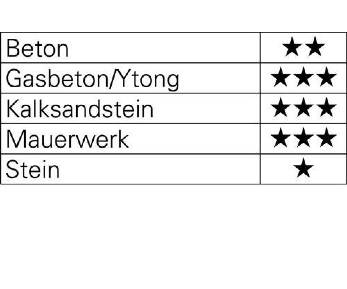SDS-plus · effektiver Bohrmehlabtransport durch aggressive Spitzen- und Wendel-Ausführung · zertifiziert durch die Prüfgemeinschaft Mauerbohrer (PGM) nach Anforderungen des Deutschen Instituts für Bautechnik (DIBt) Anwendungsbereiche: Beton, Kalksandstein, Mauerwerk (für alle Beton- und Steinanwendungen)