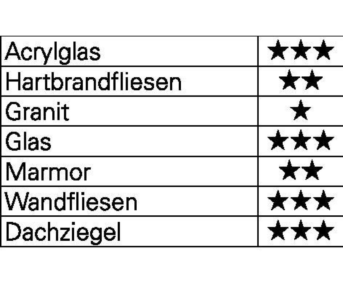 mit Sechskantschaft 6,3mm (1/4") · optimal abgestimmt auf den Einsatz in Akku-Bohrmaschinen · mit angespitzter Querschneide für präzises Anbohren · veredelte Oberfläche garantiert geringe Reibung und lange Lebensdauer · nachschleifbar Wichtig: Nur drehend (bei niedriger Drehzahl) verwenden und ausreichend kühlen Anwendungsbereiche: Keramik, Fliesen, Hartbrandfliesen, Glas, Acrylglas, Spiegelglas