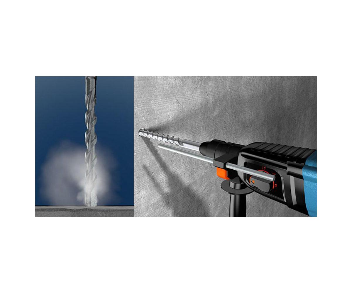 - Die neue Vario-KVS-Wendel bietet mehrere Vorteile: die schmale Rückenbreite hinter dem Bohrkopf reduziert die Reibung und sorgt für eine kraftvolle Energieübertragung beim Schlagbohren.