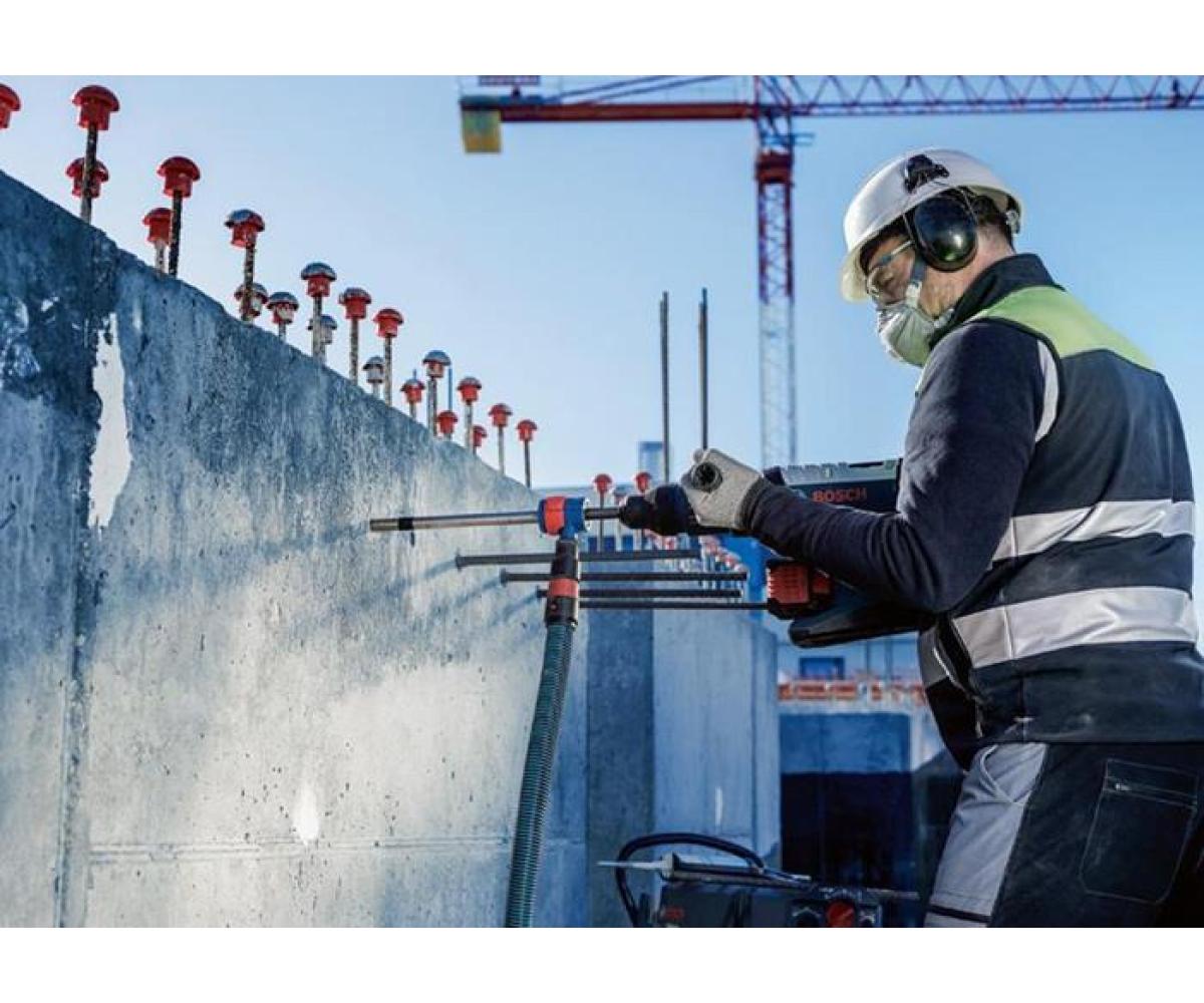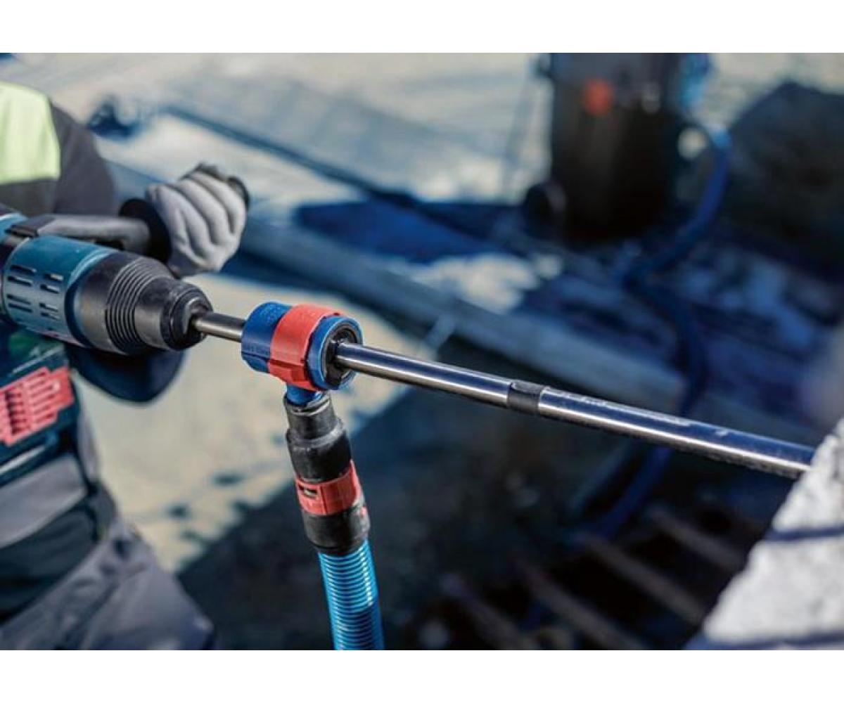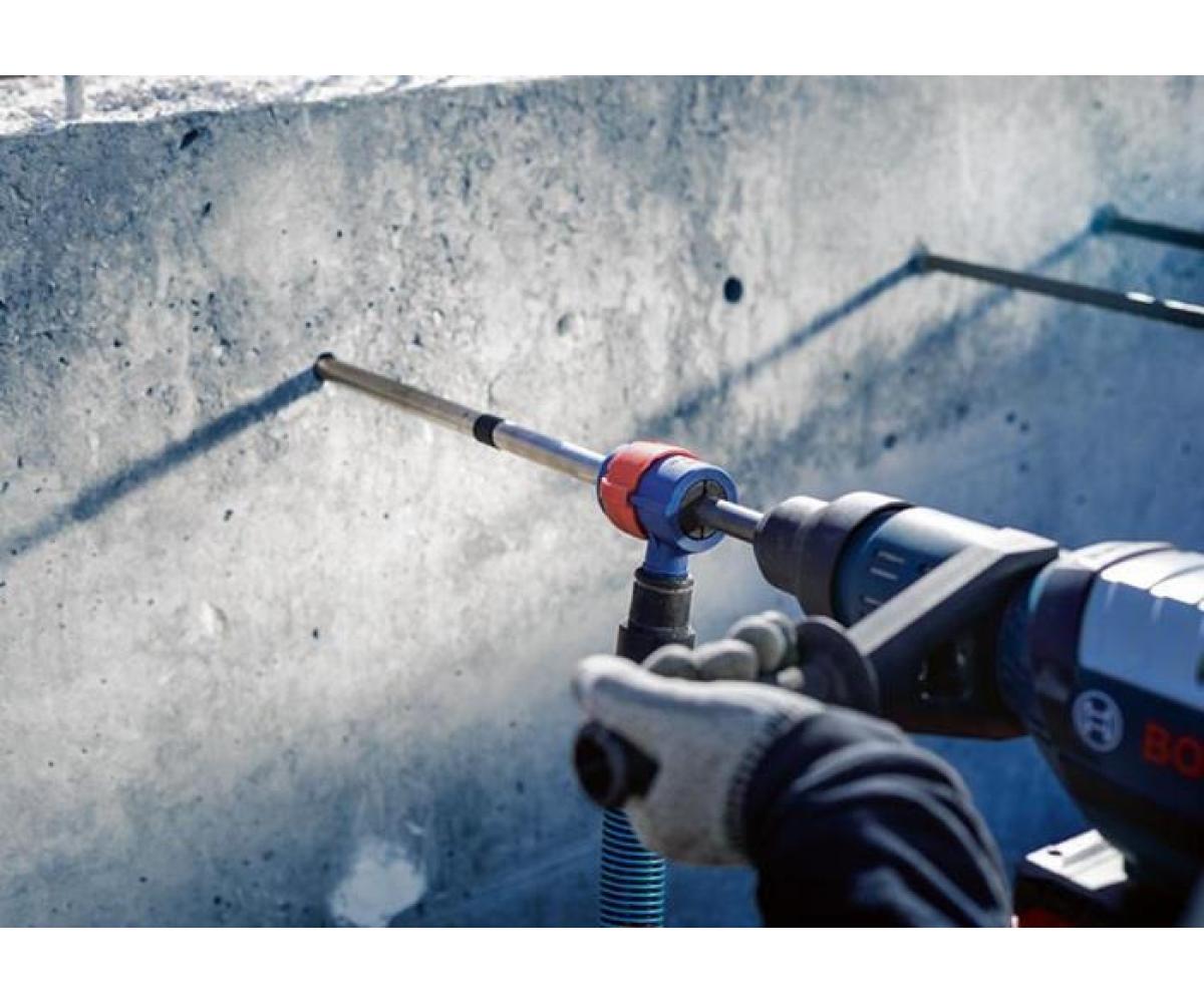 Bohren in Stahlbeton mit verbesserter Staubreduzierung! Durchdringt Stahlbeton mit einem Voll-Carbide-Kopf mit 4 Schneidern Das Bohren präziser Löcher in Beton ist nur ein Schritt bei der Installation chemischer Dübel. Der nächste Schritt besteht in zeitraubenden Reinigungsarbeiten. Mit dem EXPERT SDS Clean plus-8X wird alles anders. Das System bohrt Löcher und entfernt gleichzeitig Staub. Das beschleunigt und vereinfacht die Installation chemischer Dübel. Wir haben das EXPERT SDS Clean plus-8X Set für Bauarbeiter und Installateure entwickelt · die Löcher für chemische Dübel bohren müssen. Der Bohrer ist mit einem 4-Schneider-Vollhartmetallkopf und einem robusten Staubsaugerrohr ausgestattet. Zudem haben wir den SDS Clean plus Anschluss verbaut · der für alle SDS Clean plus-8X Bohrer geeignet ist und sich leicht montieren und abnehmen lässt. Du erhältst also einen leistungsstarken Bohrer · der bei Verstopfung leicht zu reinigen ist (einfach das Absaugrohr vom Bohrer abnehmen) sowie eine neue Technologie zur Staubreduzierung · mit der du Löcher für chemische Dübel schneller vorbereiten kannst. Zudem ist die Luft am Arbeitsplatz sauberer. Alles mit nur einem Zubehör. Hocheffizienter Abtransport von Staub mit Bosch Particle Control