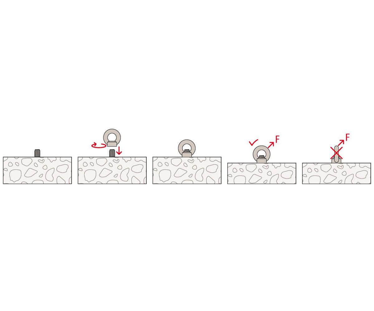L‘écrou à anneau RI est un écrou pour toutes les chevilles avec goujon fileté. De par son taraudage métrique (M 8 bis M 12),l‘écrou à anneau RI peut être utilisé de façon flexible avec de nombreuses chevilles métalliques ou tiges filetées pour scellements chimiques. Cela convient parfaitement à la fixation de chaînes, de treillis, de cordes à linge ou paniers suspendus. Selon la cheville utilisée, l'anneau de levage peut être utilisée dans le béton et dans les matériaux de construction pleins et creux.