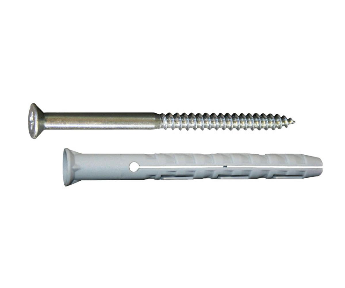 - Der Rahmendübel mit einer langen Spreizzone “RLPF“ aus reinem Nylon mit feuerverzinkter Pozidrive-Schraube ermöglicht eine sichere Befestigung in nicht massiven Materialien wie Leichtbaustoffen und Hohlkammersteinen. Durch die Feuerverzinkung wird ein sehr hoher Korrosionsschutz bewirkt. Seine 6 seitlichen Flügel verhindern zuverlässig ein Mitdrehen des Dübels während des Eindrehens der Schraube.