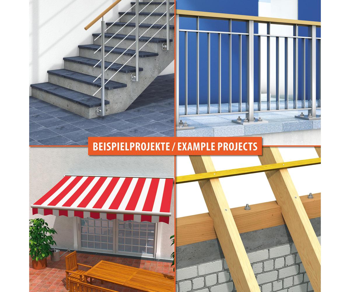 - Schwerlastanker aus galvanisch verzinktem Stahl mit Gewindebolzen, Sechskantmutter und Unterlegscheibe