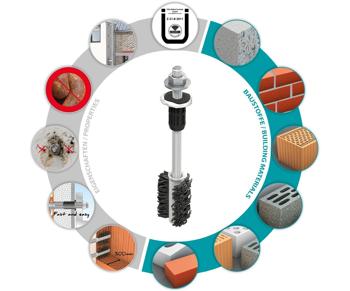 Thermo Proof is a heavy-duty distance installation system for heat insulated façades (ETICS) comprising: