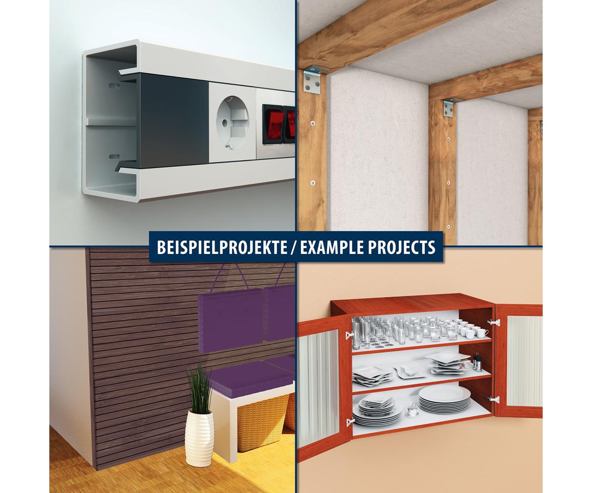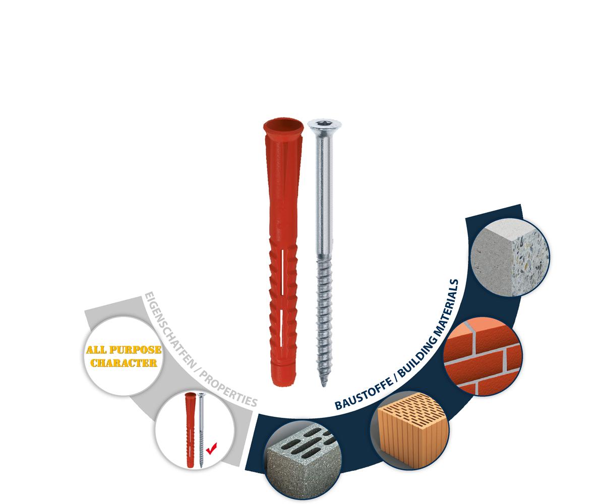- Constructor + schroef: 3-voudig gedeelde spreidelementen met verdraaibeveiligingen en galvanisch verzinkte schroef met verzonken kop en TX-aandrijving