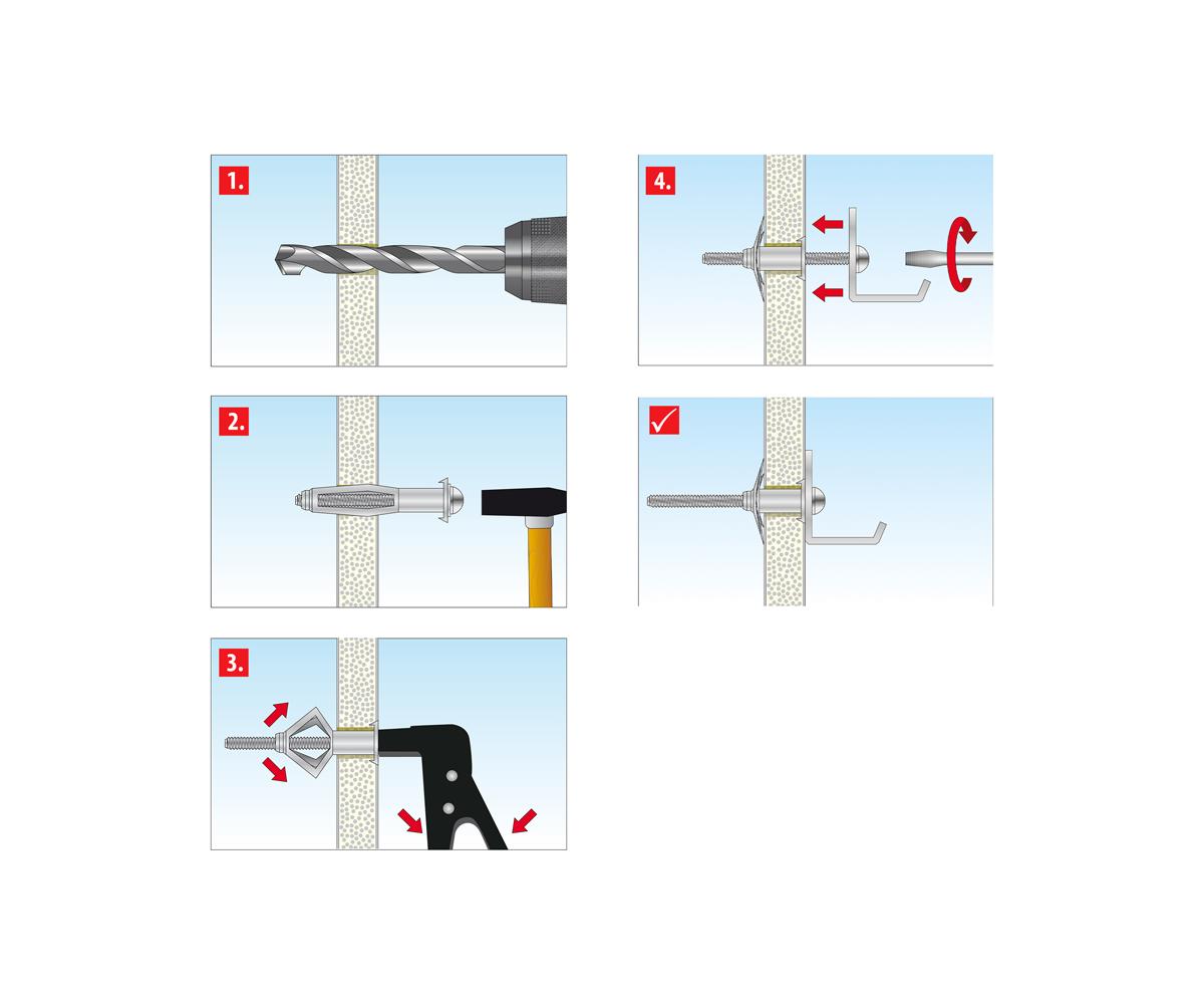 - I dispositivi anti-rotazione possono essere rimessi nella forma originale se necessario (ad es. su lastre di cartongesso piastrellate)