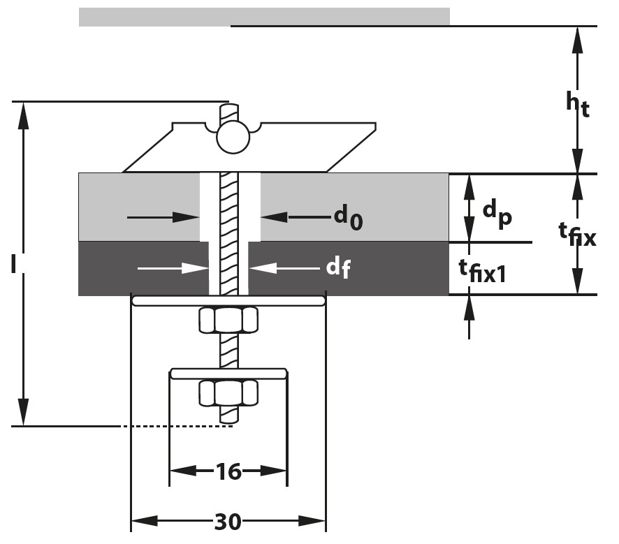 • Let op de min. diepte van de holle ruimte, evenals de plaatdikte en boor-Ø