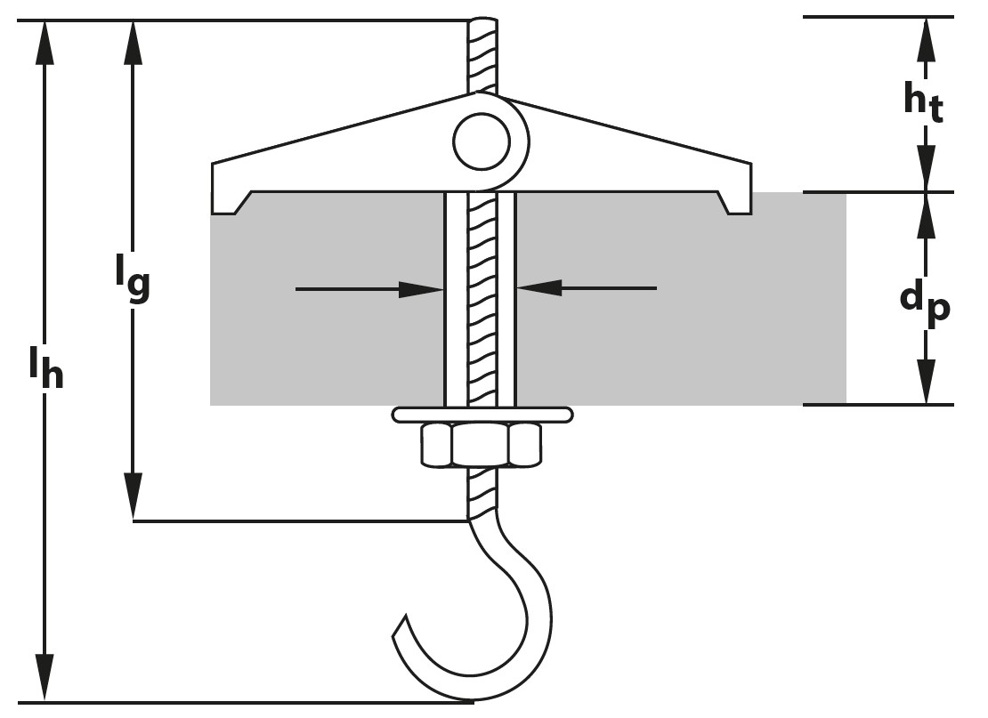 • Galvanised metal cavity toggle with two folding wings, metric thread hook, metal washer and hexagon nut