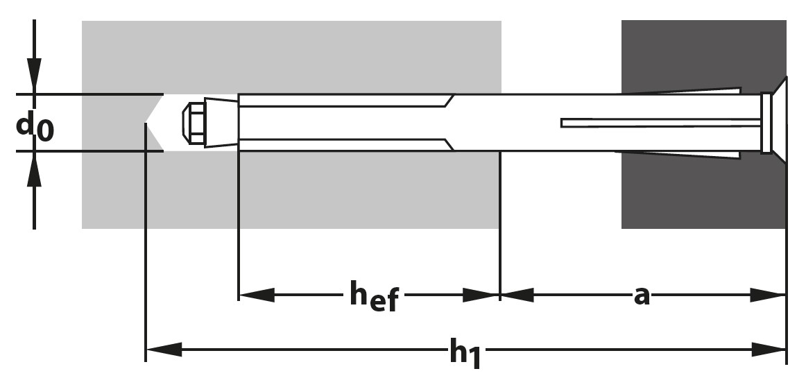 | MÃn. penetración de perno | hef | 30 | [mm] |