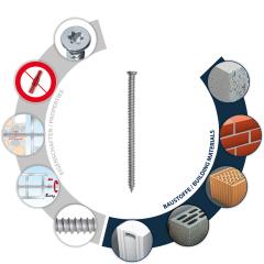 - Aus einsatzgehärtetem Stahl mit selbstschneidendem Gewinde und Senkkopf mit TX30-Antrieb