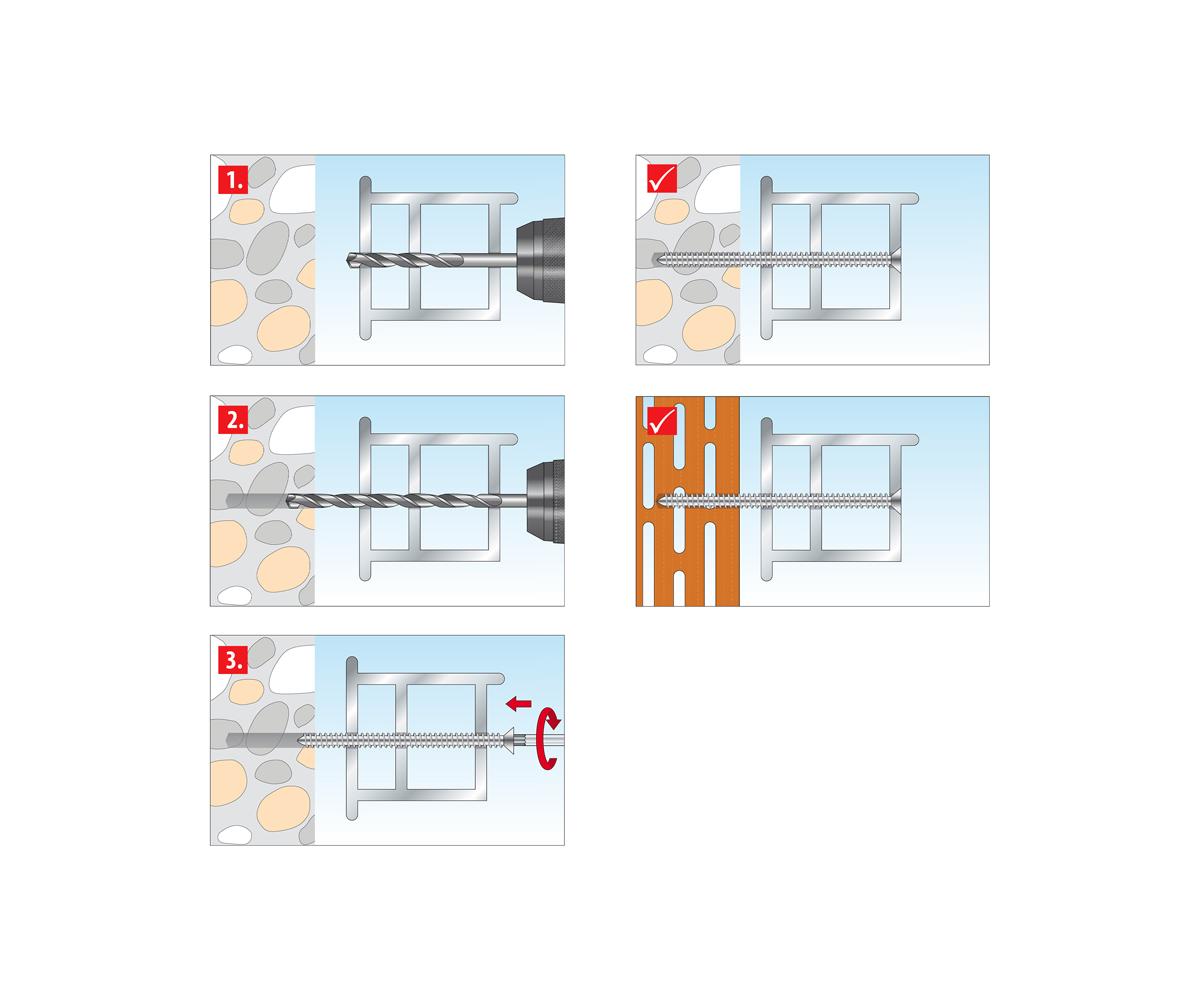 - Für Hohlmauerwerk ist die Rahmenschraubenlänge so zu wählen, dass die Einschraubtiefe mindestens durch einen innenliegenden Steg führt