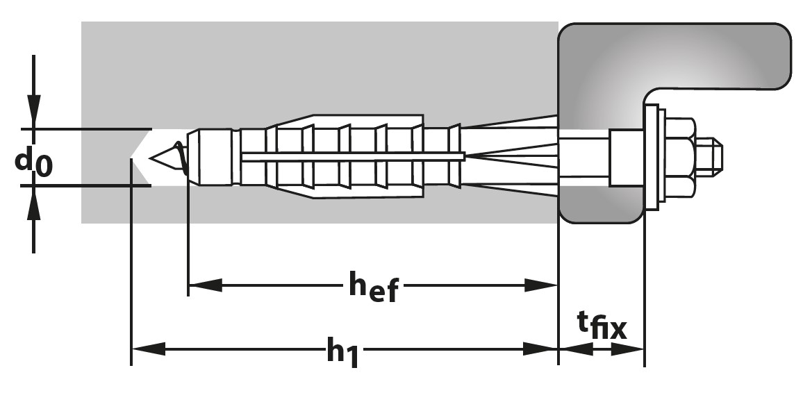 • Respetar la profundidad mínima del orificio, el espesor de la placa y el Ø de la broca