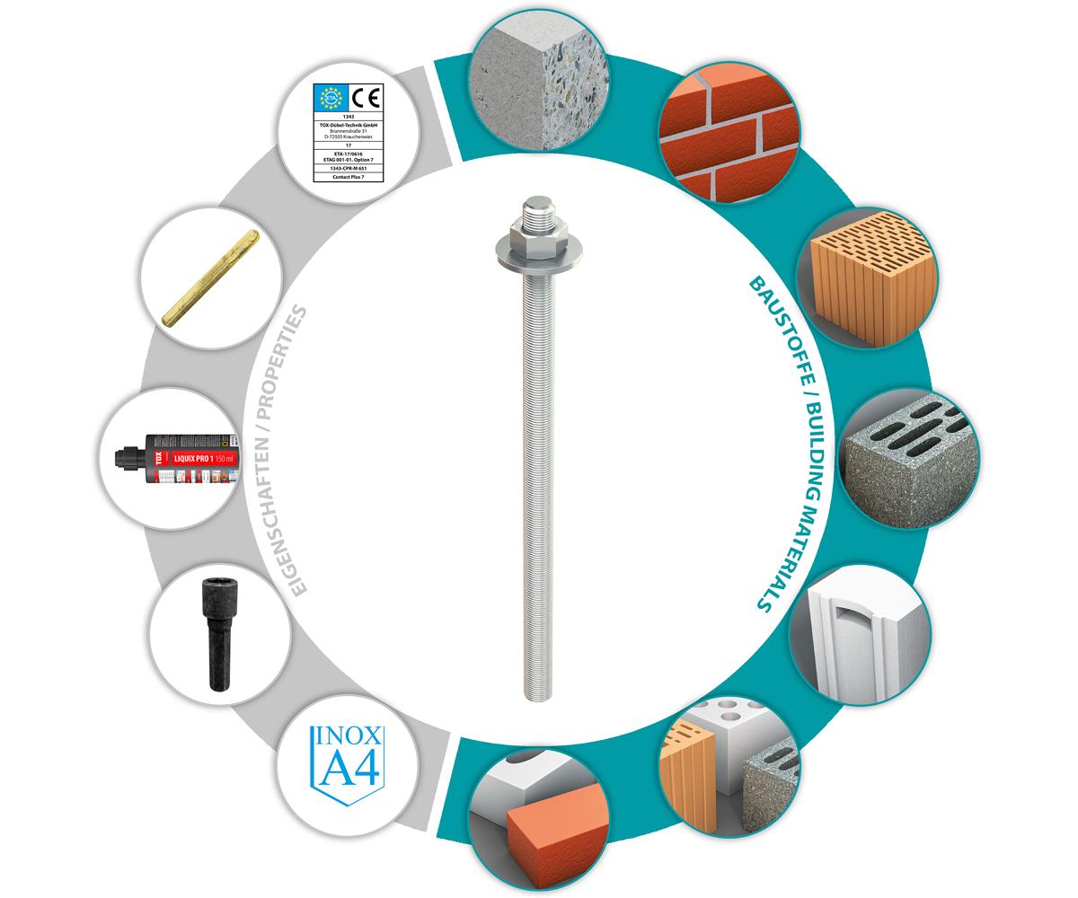 - La barra de anclaje Stix se encuentra en la lista de homologaciones para anclajes de compuestos de contacto y morteros compuestos Liquix Pro 1 y Liquix Plus 7