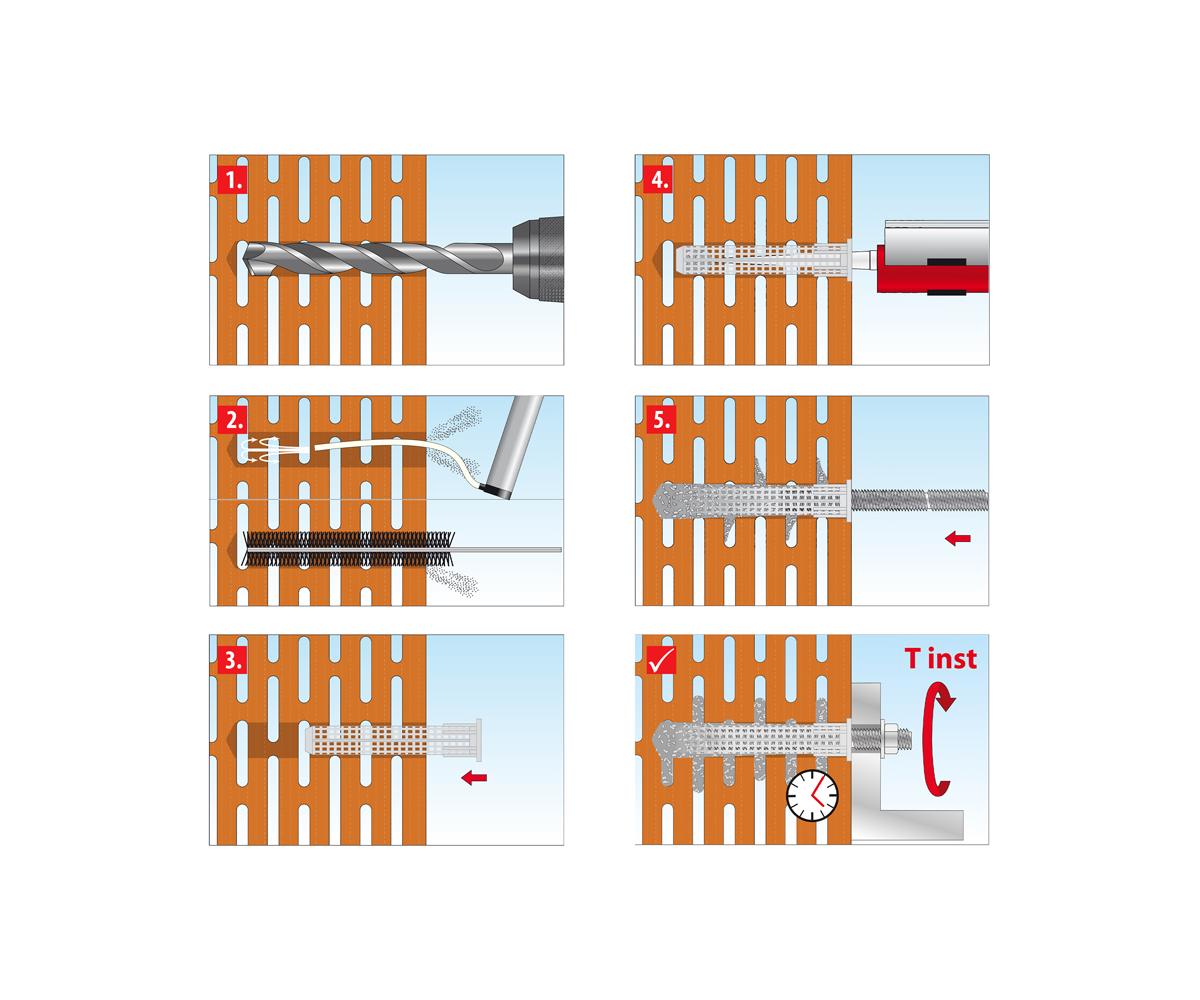 • I manicotti a setaccio devono essere utilizzati per i mattoni perforati e a camera