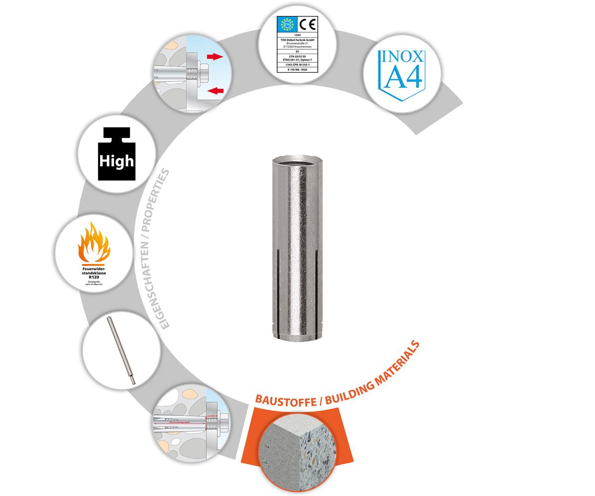 - Voor het gebruik als meervoudige bevestiging van niet dragende systemen in gescheurd of niet gescheurd beton