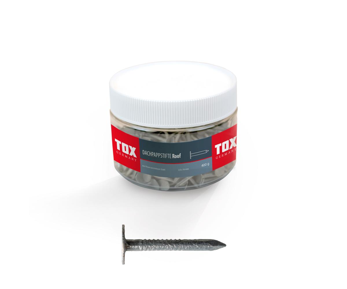 - TOX Roof Dachpappstifte, Nägel für den Bedachungsbereich, Senkkopf, feuerverzinkt, 2,0 x 16 mm, 1 Dose, 400 g (680 Stk.)