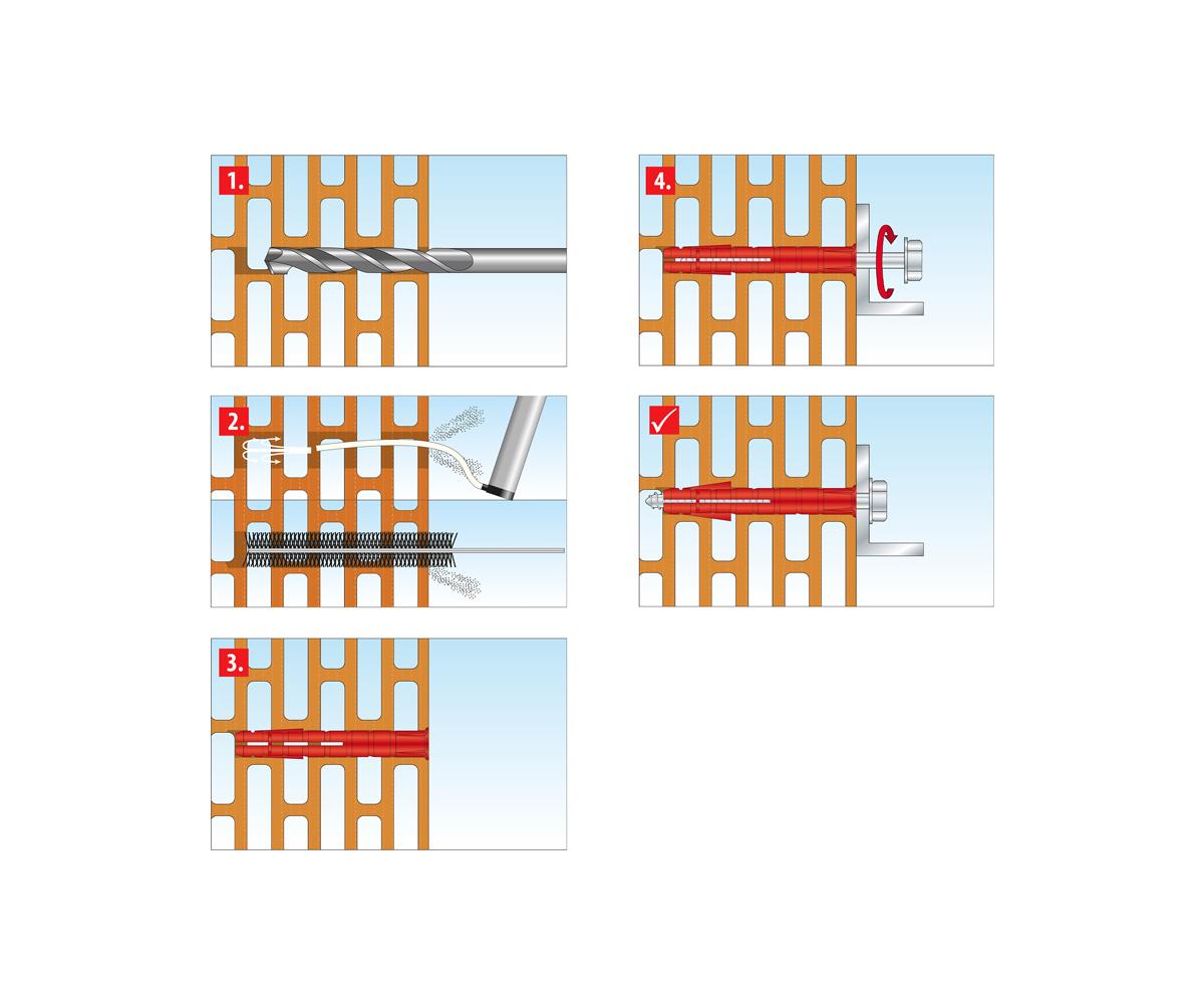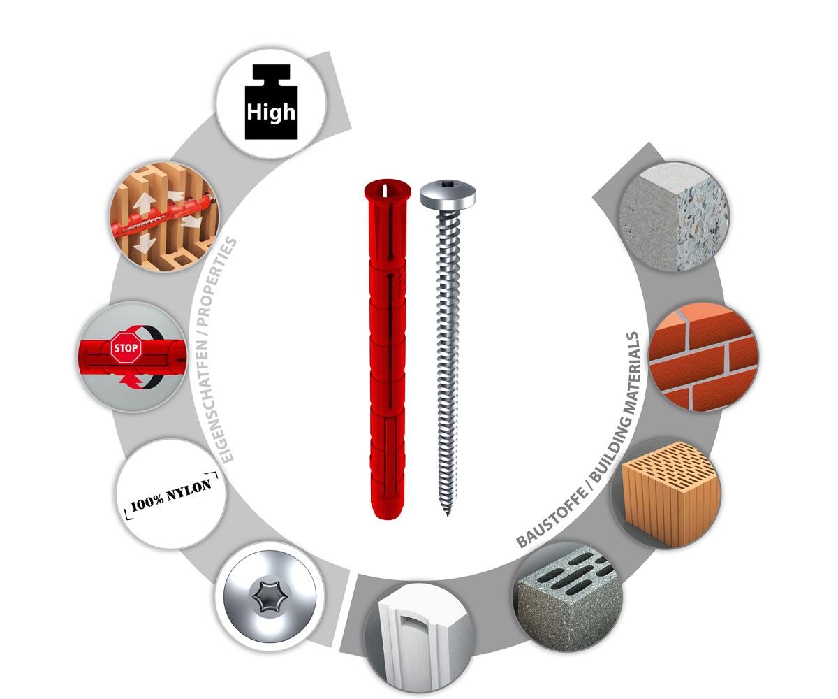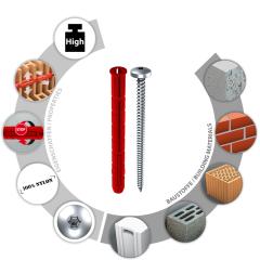 - Mindest-Schraubenlänge = Dübellänge + Anbauteildicke + 5 mm