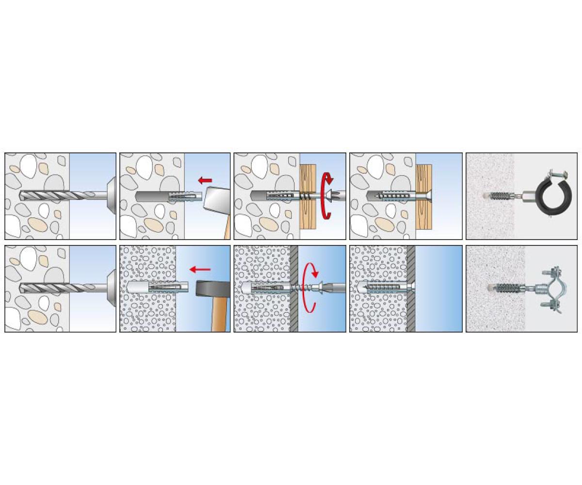 El diámetro de la broca debe adaptarse a la resistencia a la compresión del material de construcción. Cuanto mayor sea la resistencia a la compresión, mayor será el diámetro de perforación.
