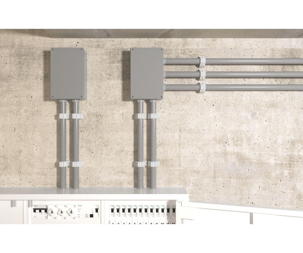 Der fischer Verschlussclip SCN ist die montagefreundliche und sichere Lösung zur Befestigung von Kunststoff-Isolierrohren und Elektroleerrohren. Der Verschlussclip wird mittels fischer Schraube und DuoPower Dübel in den unterschiedlichsten Untergründen befestigt. Beim Andrücken umschließt der Clip das Rohr automatisch und verriegelt es sicher. Der Kunststoff ist halogen- und silikonfrei und ermöglicht den Einsatz auch bei Frost. Durch das Koppelsystem können an einen bereits montierten Clip weitere Clips angereiht werden - ohne zusätzliches Bohren. Das spart Montagezeit und Kosten.