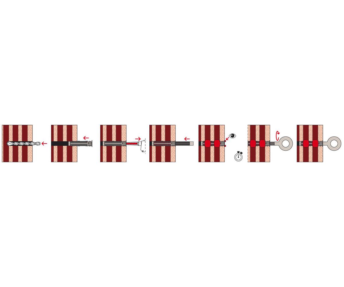 Le piton pour échafaudage fischer FI G peut être utilisé avec diverses douilles taraudées fischer agréées. Cela permet des montages et démontages multiples en utilisant le même point de fixation.Dans le béton, nous recommandons une association des mortiers FIS V et FIS EM ainsi que de la douille taraudée RG 18 x 125 M 12 I et des ancrages FZA 22 x 100 M 12 I. En maçonnerie, le piton pour échafaudage est fixé en toute sécurité avec le mortier d'injection FISCHER FIS V, le tamis d'injection FIS H 20 x 85 K et la douille taraudée FIS E 15 x 85 M 12. Ce système est idéal pour la fixation d'échafaudages de pieds, de câbles de précontrainte et de treillis.