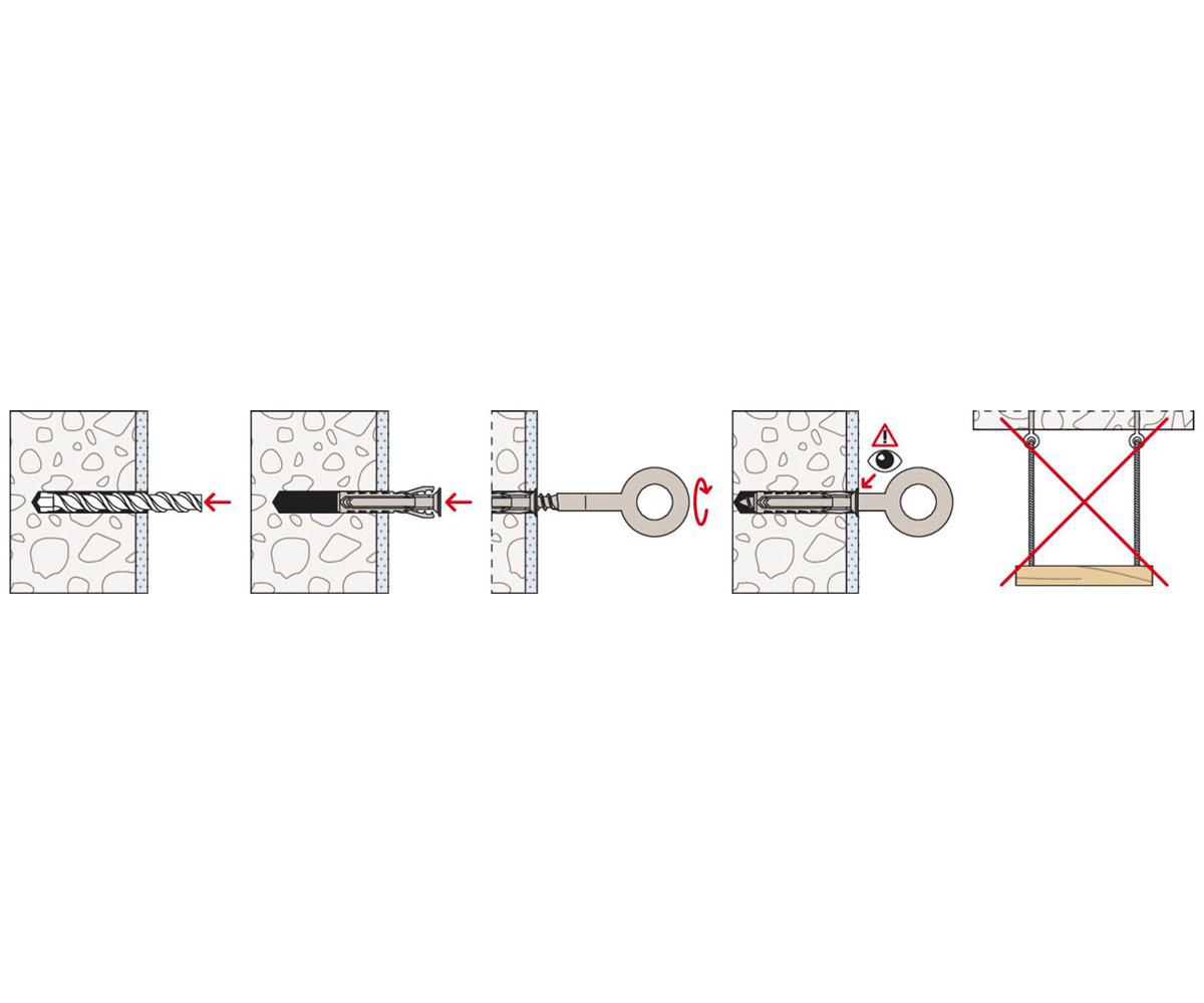 - Das optimale Zusammenwirken von Ösenschraube und Dübel ermöglicht hohe Haltewerte und bietet dadurch mehr Sicherheit.