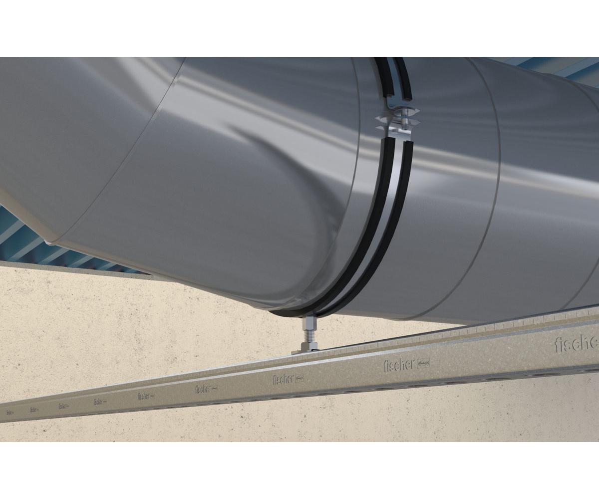 technische ZeichnungDie fischer Lüftungsrohrschelle LGS ist die ideale Befestigungslösung für Lüftungsrohre aller Art. Mit der LGS lassen sich insbesondere Wickelfalzrohre besonders einfach und schnell an den Untergrund befestigen. Dabei erlaubt der große Öffnungswinkel ein einfaches Einlegen der Rohrleitung, während die Zweischraubigkeit der LGS eine optimale Anpassung an den Rohraußendurchmesser ermöglicht. Die LGS ist ab 450 mm Durchmesser an beiden Schellenhälften gelocht. Dies ermöglicht mit 2 Gewindestangen mit Muttern eine Verdoppelung der empfohlenen Last. Die Schalldämmeinlage sorgt für zuverlässige Schallentkopplung zum Baukörper.