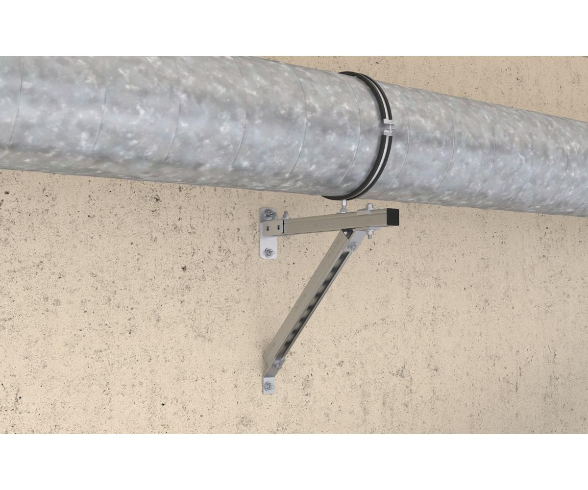 • Möglichkeit zur Befestigung von Rohren ab einem Durchmesser von 450 mm mit zwei seitlichen Gewindestangen