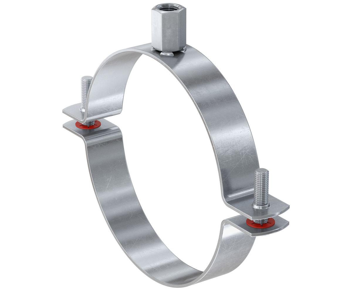 Die fischer Lüftungsrohrschelle LGSN ist die ideale Befestigungslösung für Lüftungsrohre aller Art. Mit der LGSN lassen sich insbesondere Wickelfalzrohre besonders einfach und schnell an den Untergrund befestigen. Dabei erlaubt der große Öffnungswinkel ein einfaches Einlegen der Rohrleitung, während die Zweischraubigkeit der LGSN eine optimale Anpassung an den Rohraußendurchmesser ermöglicht. Die LGSN ist ab 450 mm Durchmesser an beiden Schellenhälften gelocht. Dies ermöglicht mit 2 Gewindestangen und Muttern eine Verdoppelung der empfohlenen Last. Die LGSN ohne Schalldämmeinlage ist die preisgünstige Alternative zur LGS in Fällen wo die Schallentkopplung zum Baukörper von untergeordneter Bedeutung ist.