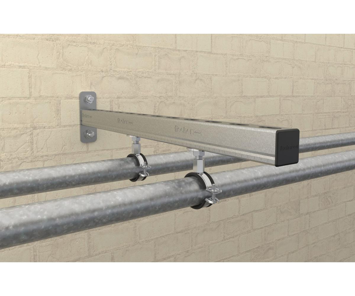 - Zeitsparendes Befestigen von Rohrleitungen bis 2“ mit Gewindestangen oder Stockschrauben