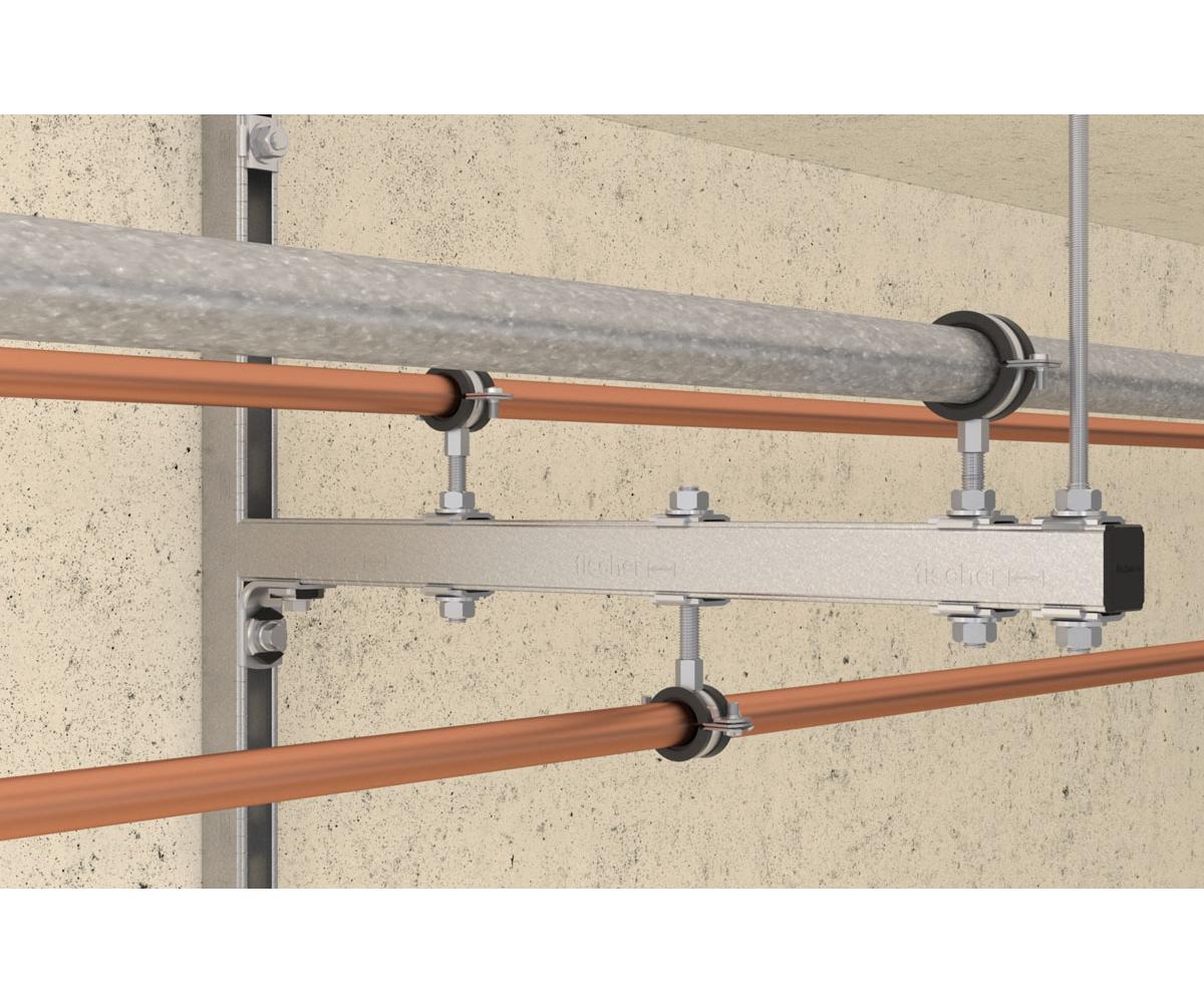 - Einfaches und leichtes Befestigen von Rohrleitungen mit Gewindestangen oder Stockschrauben