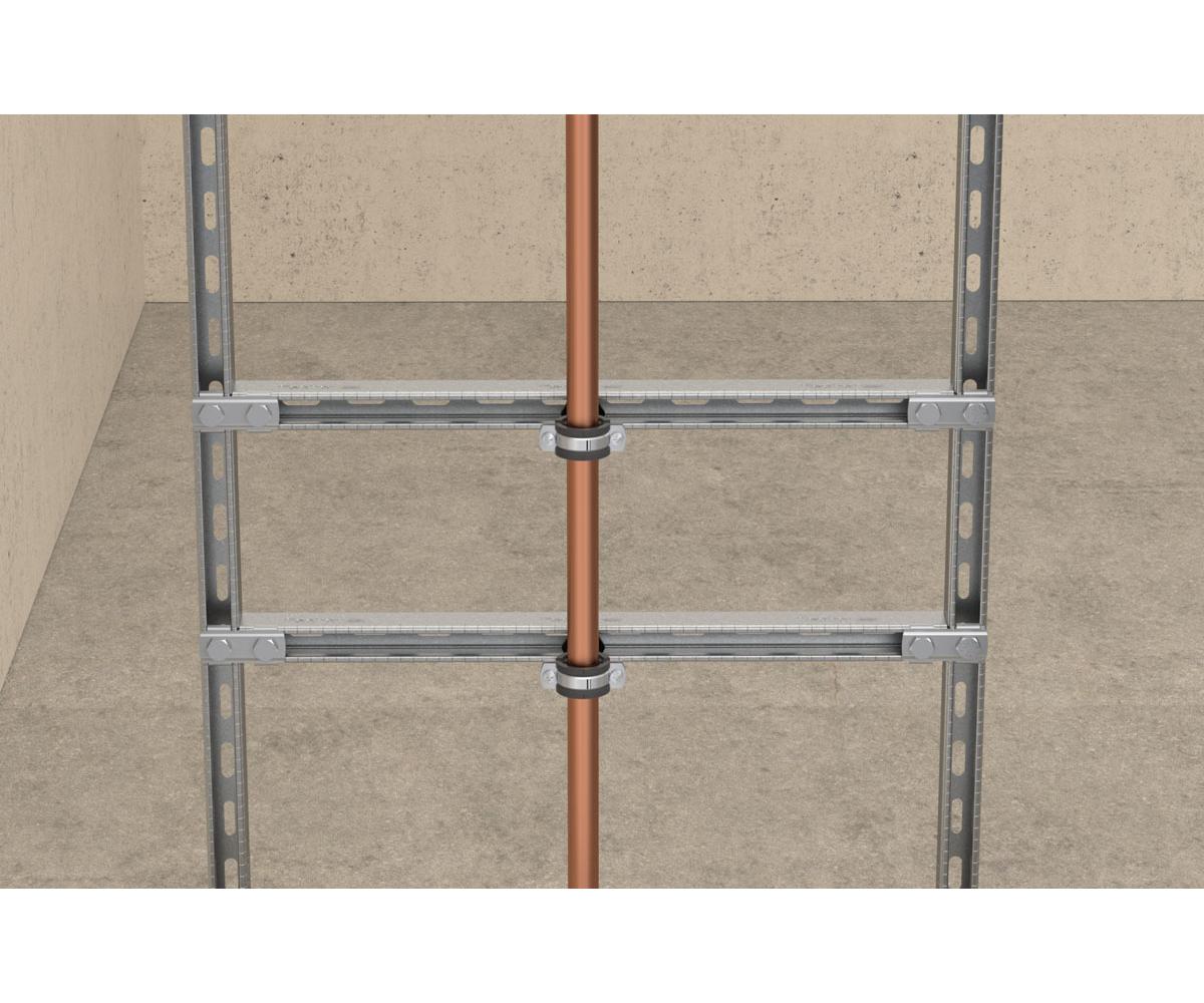 - Einfaches und leichtes Befestigen von Rohrleitungen mit Gewindestangen oder Stockschrauben