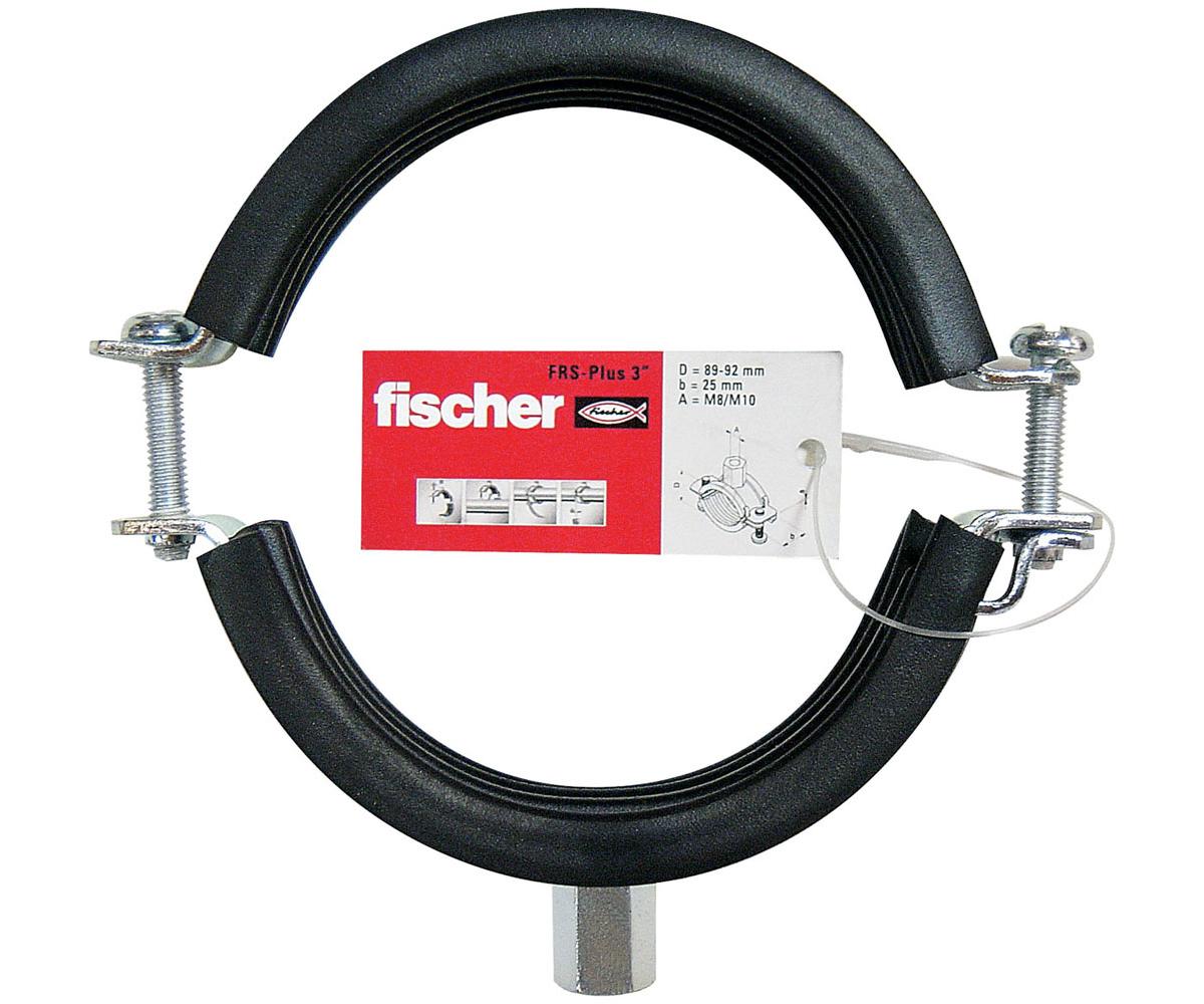 Die fischer Rohrschelle FRS Plus ermöglicht dank Schnellverschluss eine einfache und zeitsparende Montage von Rohrleitungen. Die Zweischraubigkeit ermöglicht die optimierte Anpassung auf den Rohraußendurchmesser. Sicherheitsverschluss und festsitzende Schalldämmeinlage gewährleisten die sichere Rohrjustage. Anschlussmutter mit Kombigewinde M8/M10 zur Aufnahme von Gewindestangen oder Stockschrauben. Rohrschellenschrauben mit Verlustsicherung.