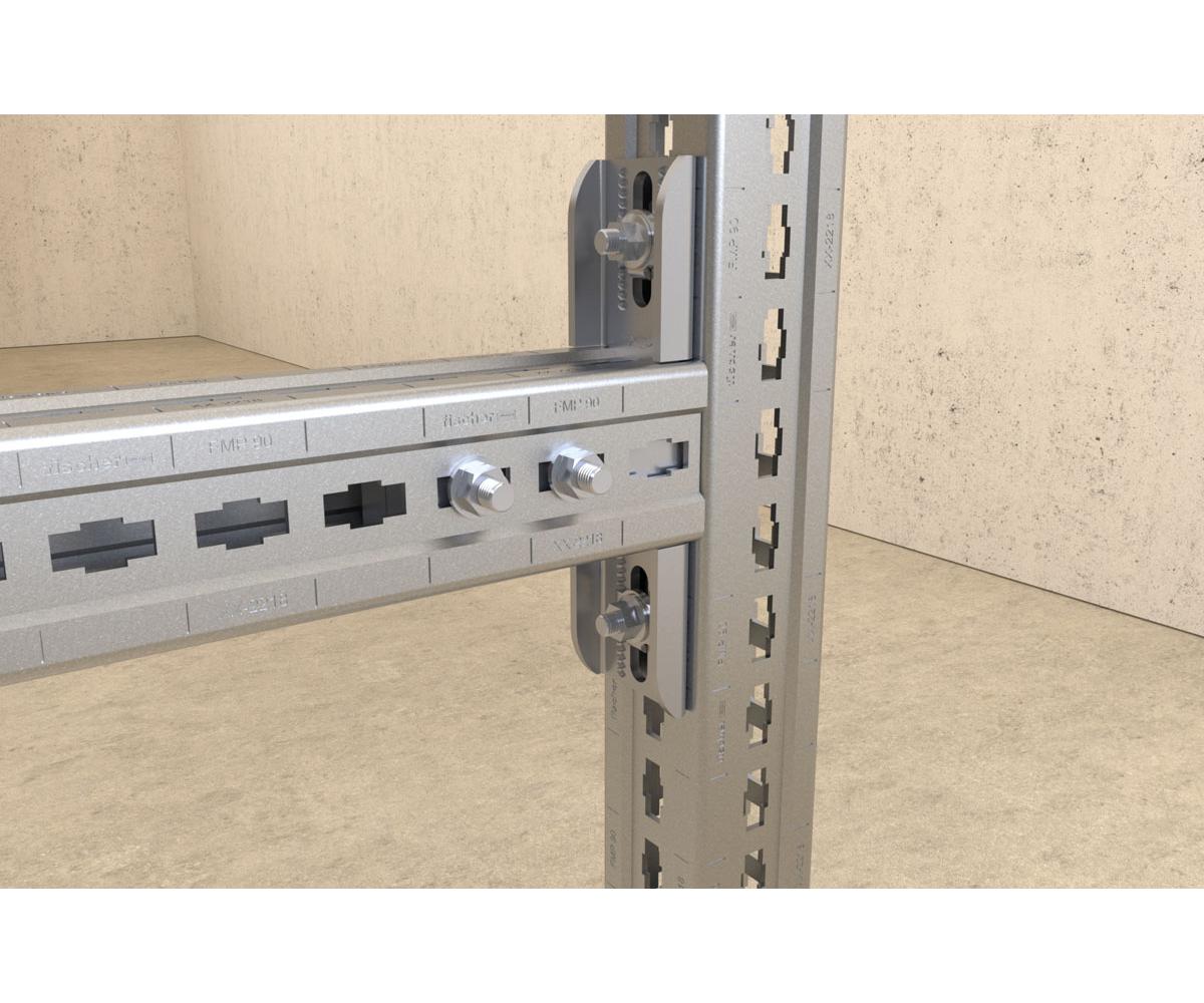• Die Ausführung der Montagewinkel FMA mit Langlöchern und Rasterung passend zum Hammerkopf-Steckverbinder FMHB ermöglicht eine optimale Justage der Konstruktion und vereinfacht den Montageprozess.