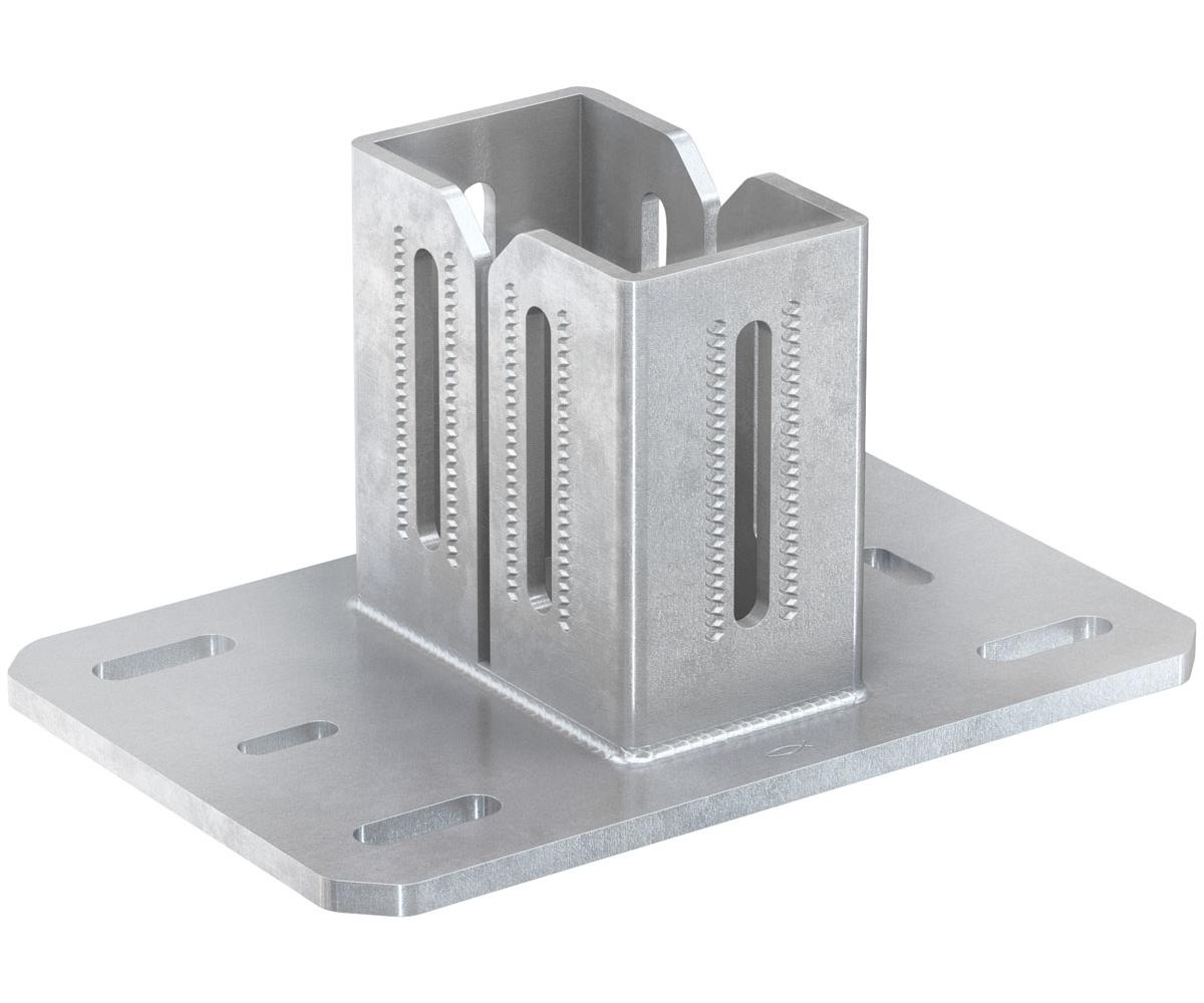 fischer Sattelflanschen sind optimale Verbindungselemente von Schiene zu Untergrund oder Stahlbau. Die Verbindung zum Montageprofil FMP erfolgt durchweg mit dem fischer Hammerkopf-Steckverbinder FMHB oder durch Trägerklammern und Anker zum Untergrund. Die Ausführung in Feuerverzinkung mit hoher Schichtdicke eignet sich für die Installationen im Freien und in korrosiver Umgebung.