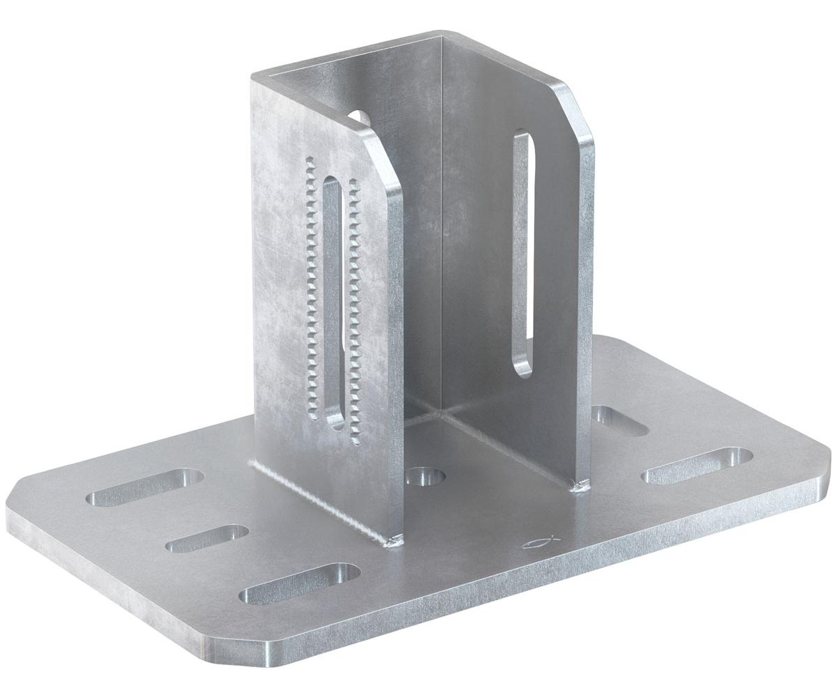 fischer Sattelflanschen sind optimale Verbindungselemente von Schiene zu Untergrund oder Stahlbau. Die Verbindung zum Montageprofil FMP erfolgt durchweg mit dem fischer Hammerkopf-Steckverbinder FMHB oder durch Trägerklammern und Anker zum Untergrund. Die Ausführung in Feuerverzinkung mit hoher Schichtdicke eignet sich für die Installationen im Freien und in korrosiver Umgebung.