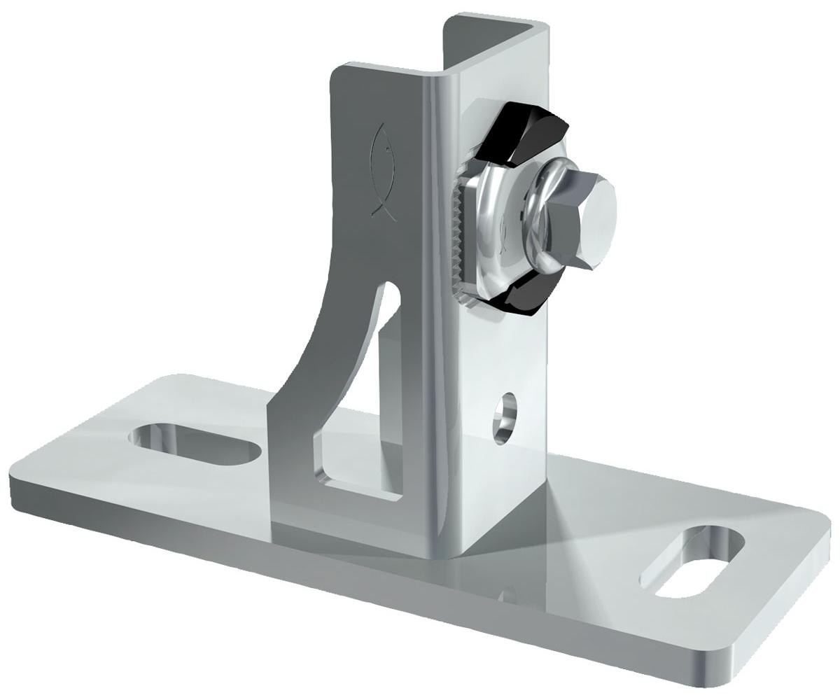 Das vormontierte fischer Konstruktionselement Sattelflansch SF Clix 31 verbindet die Montageschienen FLS in einem Winkel von 90° sicher mit dem Untergrund. Das vormontierte Element spart dabei Zeit und Kosten. Der Befestiger im SF Clix und der passgenaue Sattel ermöglichen die sichere und schnelle Montage. Die stabile Grundplatte des SF Clix 90° mit um 90° gedrehten Langlöchern erleichtert das Befestigen mittels Dübel oder Anker an den Untergrund. Die Ausführung mit galvanischer Verzinkung ist für Installationen in Gebäuden geeignet.
