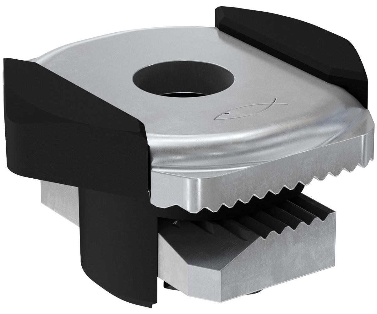 - Die ausgeprägte Verzahnung in der Schiebemutter ermöglicht die exakte und sichere Positionierung in den FLS-Montageschienen und erleichtert die Montage nachhaltig.