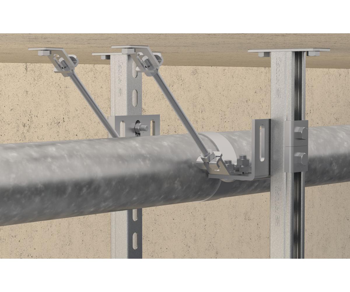 technische ZeichnungDas fischer Abspannelement FSB 45° ist ein 45°-Element für die Abspannungen der fischer Montageschienen FUS mit Gewindestangen an den Untergrund. Das Abspannelement wird mit einer Schraube M 10 und der Schiebemutter FCN-Clix P 10 an der fischer Montageschiene FUS montiert. Über die Aufnahme des Abspannelements kann die Gewindestange schnell eingesetzt werden. Die Lochung der Grundplatte ermöglicht die Befestigung direkt an Wand oder Decke bzw. auf einer Montageschiene. Die Ausführung mit galvanischer Verzinkung ist für Installationen in Gebäuden geeignet, die Versionen mit feuerverzinkter bzw. Zinklamellen (zl) Oberfläche und aus nicht rostendem Stahl sind für die Installation im Freien und hochkorrosiver Umgebung geeignet.
