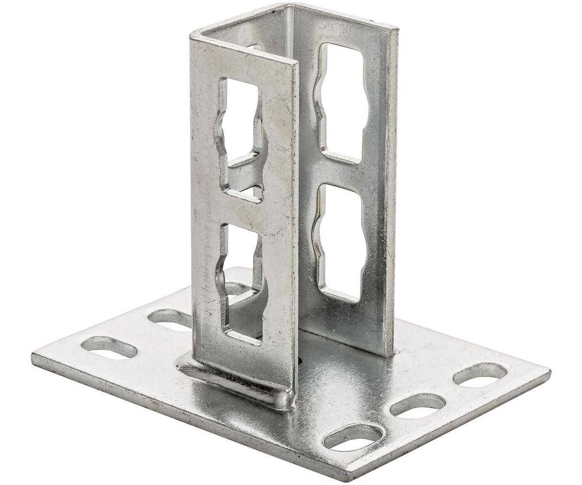 technische ZeichnungDer fischer Sattelflansch PSF schafft stabile Verbindungen zwischen fischer Montageschienen FUS und dem Bauwerk. Der Sattelflansch verbindet die Schienen mithilfe des fischer Durchsteck-Verbinders PFCN in einem Winkel von 90° mit dem Untergrund. Die mindestens dreiseitige Führung gewährt die Formschlüssigkeit mit den Montageschienen FUS und die Passgenauigkeit zum Einsetzen des Durchsteck-Verbinders. fischer bietet eine Querversion und drei Baugrößen der Standardausführung. Die stabile Grundplatte und die um 90° gedrehten Langlöcher erleichtern das Befestigen. Die Ausführung mit galvanischer Verzinkung ist für Installationen in Gebäuden geeignet, die Versionen aus feuerverzinktem und nicht rostendem Stahl für die Installation im Freien und in hochkorrosiver Umgebung.