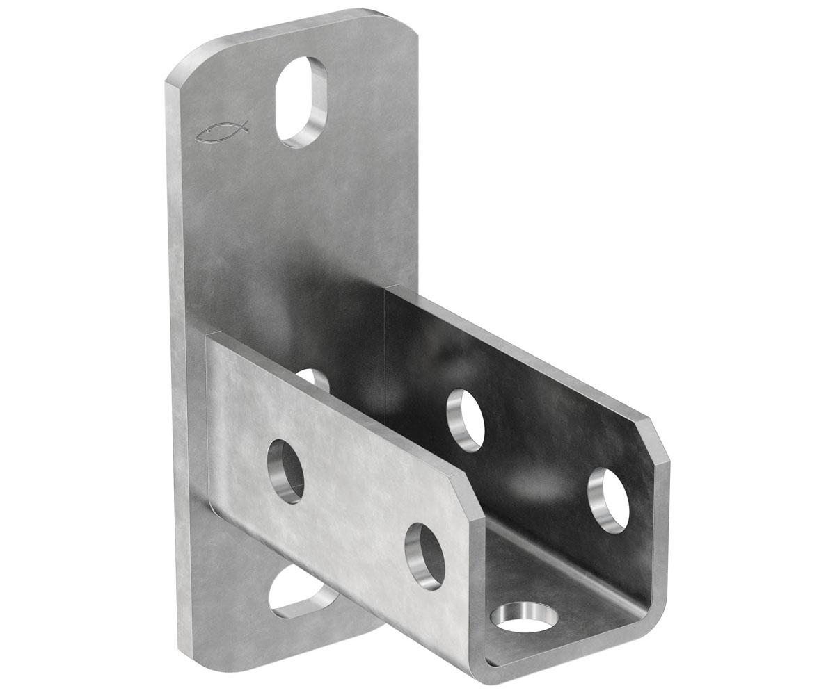 technische ZeichnungDer fischer Sattelflansch SF schafft eine sichere Verbindung zwischen Montageschienen FUS und Bauwerk. Der Sattelflansch verbindet die Schienen mithilfe von Schrauben und dem FCN Clix P in einem Winkel von 90° zum Untergrund. Der passgenaue Sattel des Sattelflansches lässt die einfache Montage durch das Einlegen der Montageschiene FUS zu. Die stabile Grundplatte mit um 90° gedrehten Langlöchern erleichtert das Befestigen. Die Ausführung mit galvanischer Verzinkung ist für Installationen in Gebäuden geeignet, die Versionen aus feuerverzinktem und nicht rostendem Stahl für die Installation im Freien und in hochkorrosiver Umgebung.