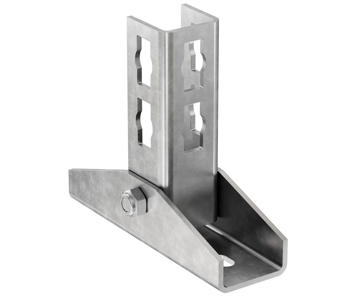 technische ZeichnungDer fischer Variable Schienenfuß PVB ermöglicht die stabile Verbindung von Montageschienen FUS an den Untergrund in einem Winkel von 0 - 180°. Der PVB verbindet die Schienen mithilfe des Durchsteck-Verbinders PFCN mit dem Untergrund. Die dreiseitige Führung gewährt die Formschlüssigkeit mit den Schienen und die Passgenauigkeit zum Einsetzen des Durchsteck-Verbinders. Die Grundplatte mit um 90° gedrehten Langlöchern erleichtert das Befestigen. Die Ausführung mit galvanischer Verzinkung ist für Installationen in Gebäuden geeignet, die Versionen aus feuerverzinktem und nicht rostendem Stahl für die Installation im Freien und in hochkorrosiver Umgebung.