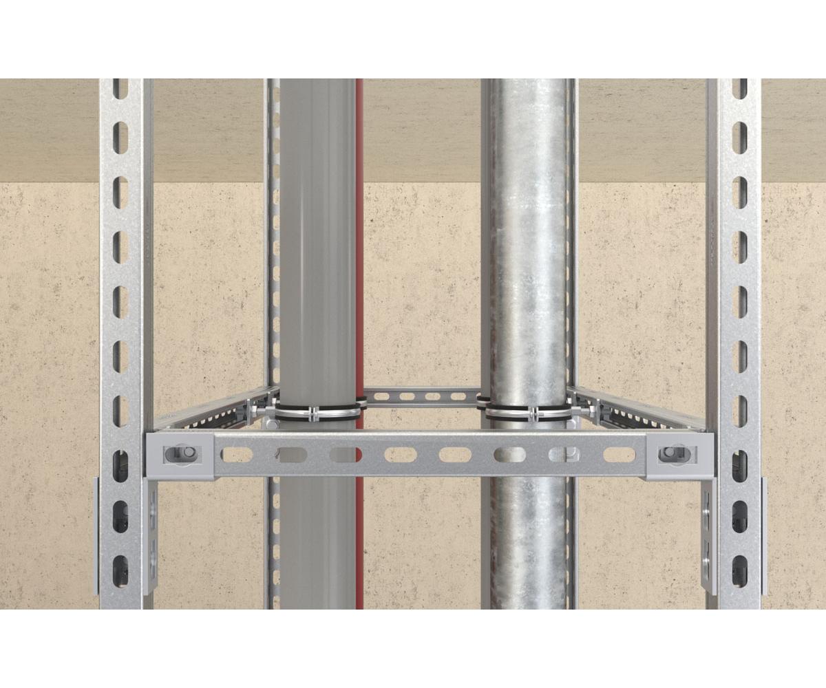 • Die Lochung der Konstruktionselemente gewährleistet den Systemfit mit dem Durchsteck-Verbinder PFCN.