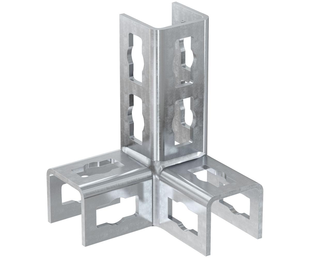 Die fischer Verbindungselemente PFUF 2D, 3D und 4D verbinden mehrdimensionale Konstruktionen mit den Montageschienen FUS und dem Durchsteckverbinder PFCN. Mit den PFUF 3D und 4D Verbindungselementen lassen sich mehrseitige Schachtkonstruktionen innerhalb kurzer Zeit leicht und einfach erstellen. Die Ausführung mit galvanischer Verzinkung ist für Installationen in Gebäuden geeignet, die Versionen mit feuerverzinkter bzw. Zinklamellen (zl) Oberfläche und aus nicht rostendem Stahl sind für die Installation im Freien und hochkorrosiver Umgebung geeignet.