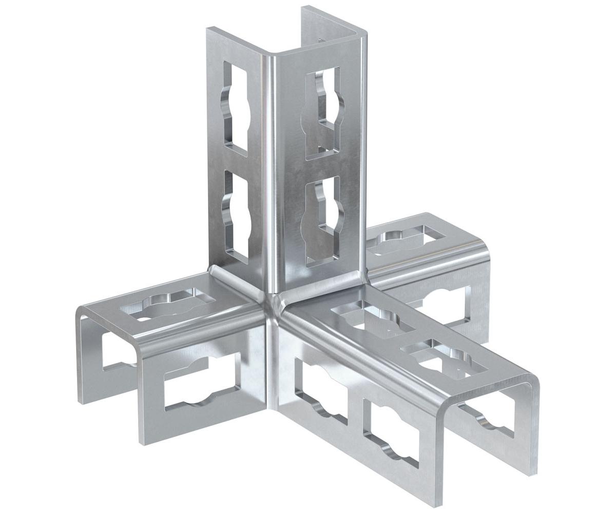 Die fischer Verbindungselemente PFUF 2D, 3D und 4D verbinden mehrdimensionale Konstruktionen mit den Montageschienen FUS und dem Durchsteckverbinder PFCN. Mit den PFUF 3D und 4D Verbindungselementen lassen sich mehrseitige Schachtkonstruktionen innerhalb kurzer Zeit leicht und einfach erstellen. Die Ausführung mit galvanischer Verzinkung ist für Installationen in Gebäuden geeignet, die Versionen mit feuerverzinkter bzw. Zinklamellen (zl) Oberfläche und aus nicht rostendem Stahl sind für die Installation im Freien und hochkorrosiver Umgebung geeignet.