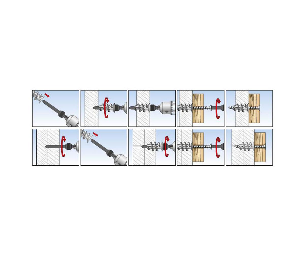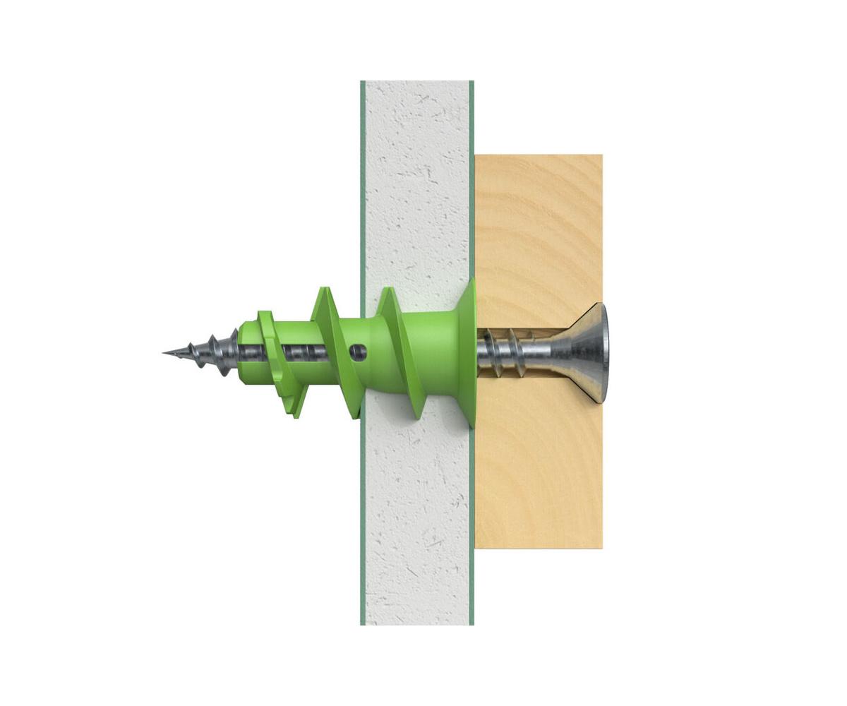 Mindestschraubenlänge = Dübellänge 22 mm + Befestigungsdicke des anzuschließenden Bauteils.