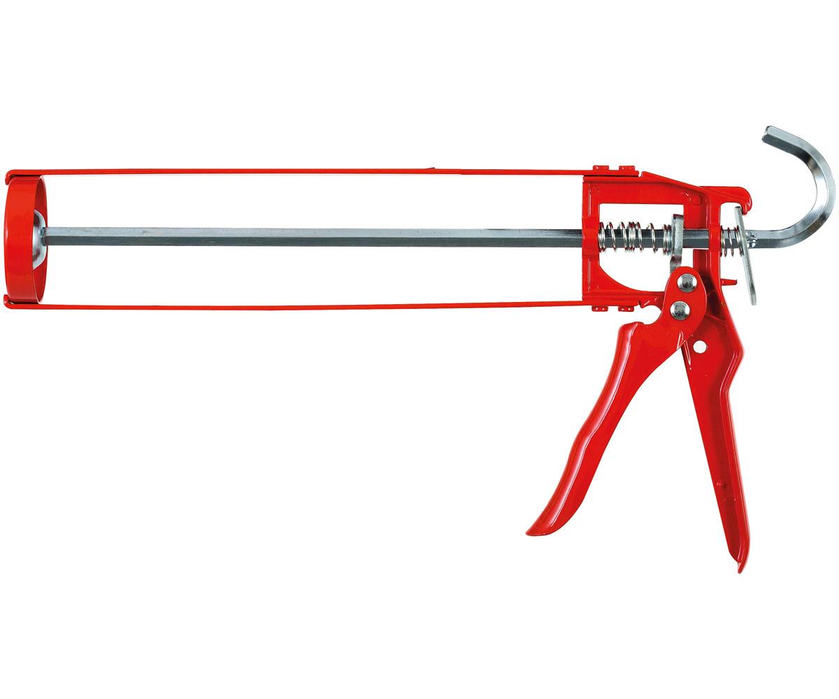 • Die handliche, robuste Vollmetallkonstruktion für Standardkartuschen bis 310 ml hält den Anforderungen auf der Baustelle stand und ist somit auch für den professionellen Einsatz geeignet.